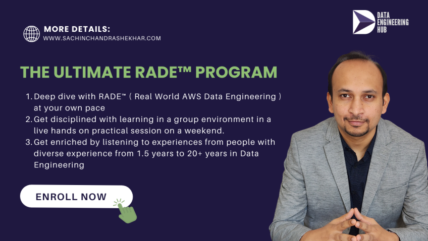 1. RADE™ ( Real World AWS Data Engineering ) Deep Dive 2. RADE™ Live Hackathons 3. RADE™ Interview Guides 4. RADE™ Success Strategies
