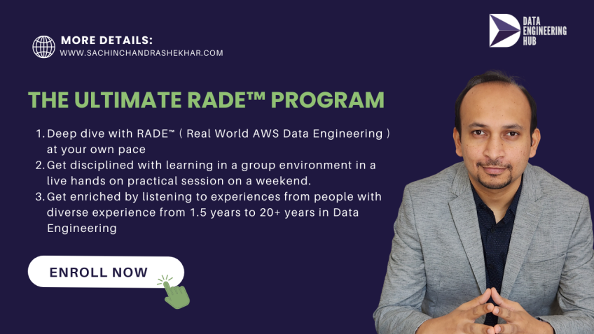1. RADE™ ( Real World AWS Data Engineering ) Deep Dive 2. RADE™ Live Hackathons 3. RADE™ Interview Guides 4. RADE™ Success Strategies